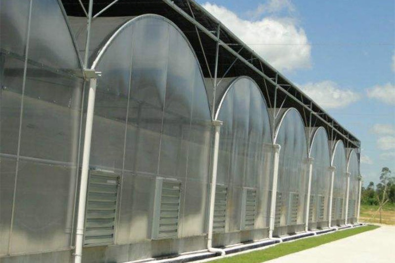 PC sheet greenhouse can be made into arch or spire. The covering material of the greenhouse is polycarbonate hollow board (PC sunlight board). Compared with other covering materials, it has good lighting, warmth, convenience, high strength and anti-condensation. It has the advantages of impact resistance, flame retardancy, economy and durability. The sun-facing surface of the board has an ultraviolet layer and anti-aging performance for 10 years. The greenhouse has a long service life, beautiful appearance, good heat preservation effect, and can save heating energy in winter.