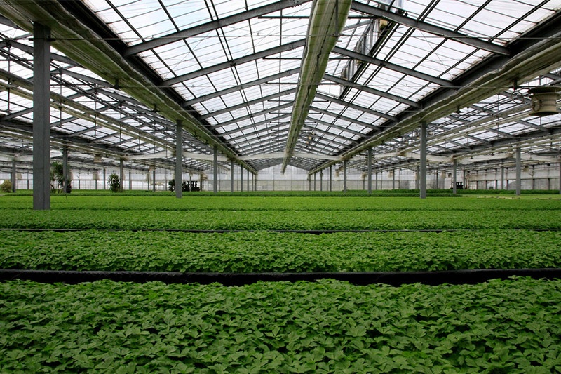 Wenluo glass greenhouse is a three-span roof, double-slope small roof truss structure, rainy trough, beautiful appearance, strong hanging ability, good light transmission, large space and strong mechanical properties.