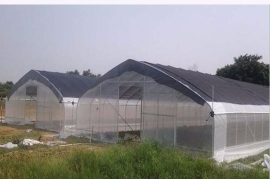 本大棚在薄膜的外面覆蓋了一層遮陰網,遮陰網遮光率高,兩側可用卷膜桿卷起,使用非常方便