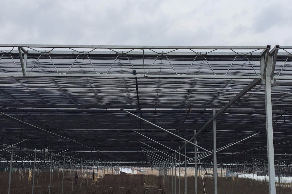 該系統(tǒng)實現(xiàn)夏季的遮陽降溫,使陽光漫射進(jìn)出溫室,防止作物受強(qiáng)光灼傷,同時降低溫室4-6度。可選用不同遮陽率的幕布,或調(diào)節(jié)幕布的開合,以滿足不同作物的生長需求。抗紫外線、防雹、遮陽降溫。作物對光照要求有所不同,用戶在選擇遮陽幕布時應(yīng)根據(jù)種植作物的種類,所在地區(qū)和所建溫室類型來配置。