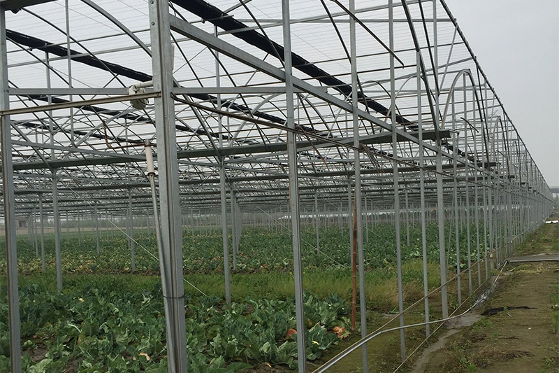連棟大棚是簡易單體大棚的升級產(chǎn)品,其特點是節(jié)省土地,空間更大,機(jī)械操作方便。