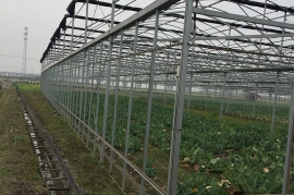 該產(chǎn)品由基礎(chǔ)、框架立柱,頂部拱管三大部分組成。點式獨(dú)立基礎(chǔ),使大棚根基牢固;立柱采用熱鍍鋅方管,大大增強(qiáng)抗風(fēng)抗雪強(qiáng)度;頂部由熱浸鍍鋅鋼管排列成平滑圓弧形,牢固兼美觀。同時天溝采用2mm厚熱鍍鋅板冷彎成型,容量大,排水及時;頂部天溝處和大棚四周均設(shè)置搖膜通風(fēng)系統(tǒng),是大棚內(nèi)部氣流通暢。此產(chǎn)品可根據(jù)需要實現(xiàn)相關(guān)配套設(shè)施,以便達(dá)到更理想的效果,如外遮陽系統(tǒng)、內(nèi)遮陽保溫系統(tǒng)、降溫系統(tǒng)、加溫系統(tǒng)、噴滴灌系統(tǒng)等。