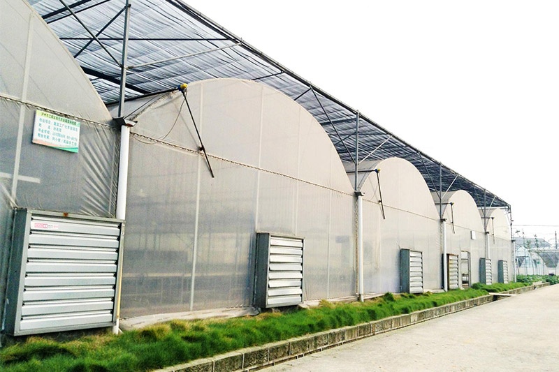 該產品由基礎、框架立柱,頂部拱管三大部分組成。點式獨立基礎,使大棚根基牢固;立柱采用熱鍍鋅方管,大大增強抗風抗雪強度;頂部由熱浸鍍鋅鋼管排列成平滑圓弧形,牢固兼美觀。同時天溝采用2mm厚熱鍍鋅板冷彎成型,容量大,排水及時;頂部天溝處和大棚四周均設置搖膜通風系統(tǒng),是大棚內部氣流通暢。此產品可根據需要實現(xiàn)相關配套設施,以便達到更理想的效果,如外遮陽系統(tǒng)、內遮陽保溫系統(tǒng)、降溫系統(tǒng)、加溫系統(tǒng)、噴滴灌系統(tǒng)等。