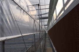 該產(chǎn)品由基礎(chǔ)、框架立柱,頂部拱管三大部分組成。點式獨(dú)立基礎(chǔ),使大棚根基牢固;立柱采用熱鍍鋅方管,大大增強(qiáng)抗風(fēng)抗雪強(qiáng)度;頂部由熱浸鍍鋅鋼管排列成平滑圓弧形,牢固兼美觀。同時天溝采用2mm厚熱鍍鋅板冷彎成型,容量大,排水及時;頂部天溝處和大棚四周均設(shè)置搖膜通風(fēng)系統(tǒng),是大棚內(nèi)部氣流通暢。此產(chǎn)品可根據(jù)需要實現(xiàn)相關(guān)配套設(shè)施,以便達(dá)到更理想的效果,如外遮陽系統(tǒng)、內(nèi)遮陽保溫系統(tǒng)、降溫系統(tǒng)、加溫系統(tǒng)、噴滴灌系統(tǒng)等。