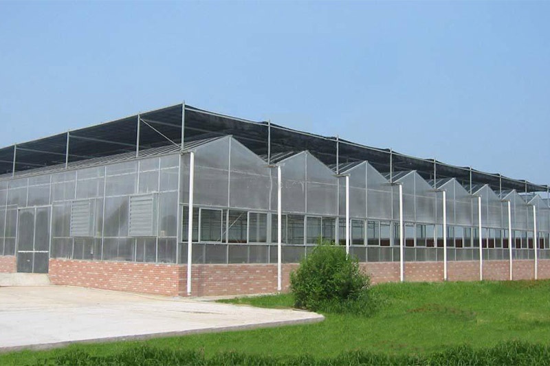文洛式玻璃溫室為一跨三尖頂、雙坡面小屋頂桁架結(jié)構(gòu)、多雨槽、具有美觀、吊掛能力強(qiáng)、透光性好、空間大、機(jī)械性能強(qiáng)等優(yōu)點(diǎn)。