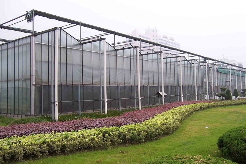 文洛式玻璃溫室為一跨三尖頂、雙坡面小屋頂桁架結構、多雨槽、具有美觀、吊掛能力強、透光性好、空間大、機械性能強等優點。
