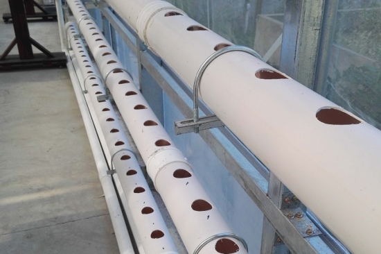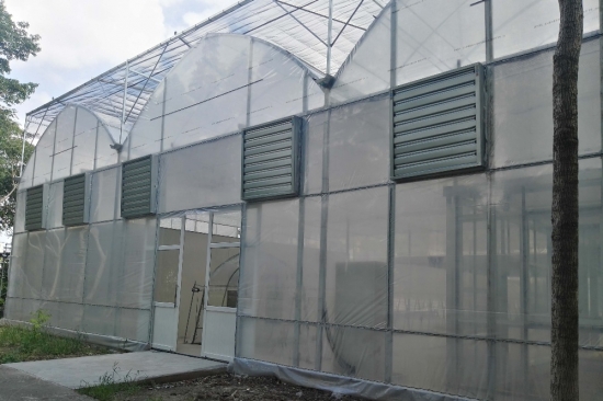 連棟薄膜溫室配備外遮陽系統,內遮陽系統,棚內有小的玻璃溫室,單體大棚,風機濕簾降溫系統,水培系統,智能控制系統!